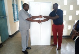 Mkurugenzi Mtendaji wa Halmashauri ya wilaya ya Kyela ndugu Ezekiel Magehema(katikati mwenye suti nyeupe) amepokea makabati yaliyotolewa na shirika la PACT-Tanzania, wakishirikiana na mashiri...