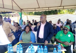 Mheshimiwa Mwenyekiti wa halmashauri ya wilaya ya Kyela Katule G. Kingamkono(kushoto) akizungumza machache na Mkurugenzi Mtendaji wa halmashauri ya wilaya ya Kyela Bi. Florah A. Luhala (katikati) ...