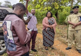 Mkuu wa wilaya ya Kyela Mhe. Josephine Manase (mbele) akiongoza msafara kuelekea eneo ambapo shule ya wasichana ya Mkoa itajengwa.