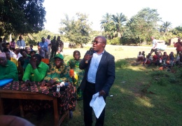 Mkuu wa mkoa wa mbeya Mhe. Juma Homera akizungumza na wananchi wa kata ya Katumbasongwe wakati wa kukabidhi misaada kwa wahanga wa mafuriko Kyela.