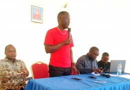 Mwenyekiti wa halmashauri ya wilaya ya Kyela Mheshimiwa Katule G.Kingamkono akiwa anazungumza na watenda kazi ya anwani ya makazi.