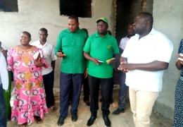 Mwenyekiti wa Chama Cha Mapinduzi Kyela Mheshimiwa Patrick M.Mwampeta(alievaa kofia) akiongea na baadhi ya wananchi katika mradi wa ujenzi wa kituo cha afya Itunge.