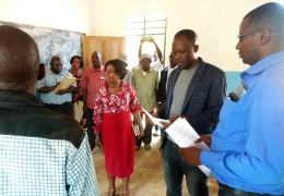 Mheshimiwa mwenyekiti wa Halmashauri ya wilaya ya Kyela Katule G.Kingamkono akikagua ujenzi wa madarasa katika shule ya msingi Nduka.